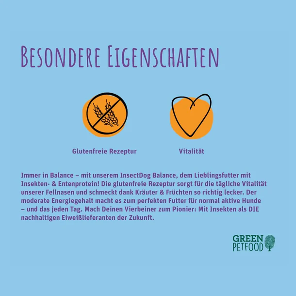 This complete feed is ideal for normally active adult dogs, blending 10% insect protein and 10% duck protein for a sustainable, highly digestible alternative to traditional animal proteins. Crafted with natural ingredients, it delivers balanced daily nutrition while supporting heart health, immunity and overall well-being—no artificial additives, just pure, tasty nutrition.